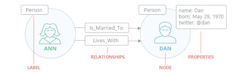 - 노드는 관계를 통해 다른 노드에 연결되며, 하나 이상의 속성을 가질 수 있음